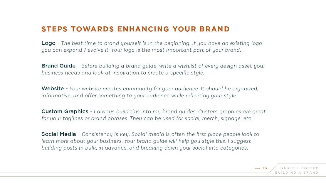 One of my favorite tools here is a brand archetype chart (you can easily find them online). It helps you think of your brand as a personality — a voice and character that you consistently show up with. Defining this early gives you a foundation for everything that follows.